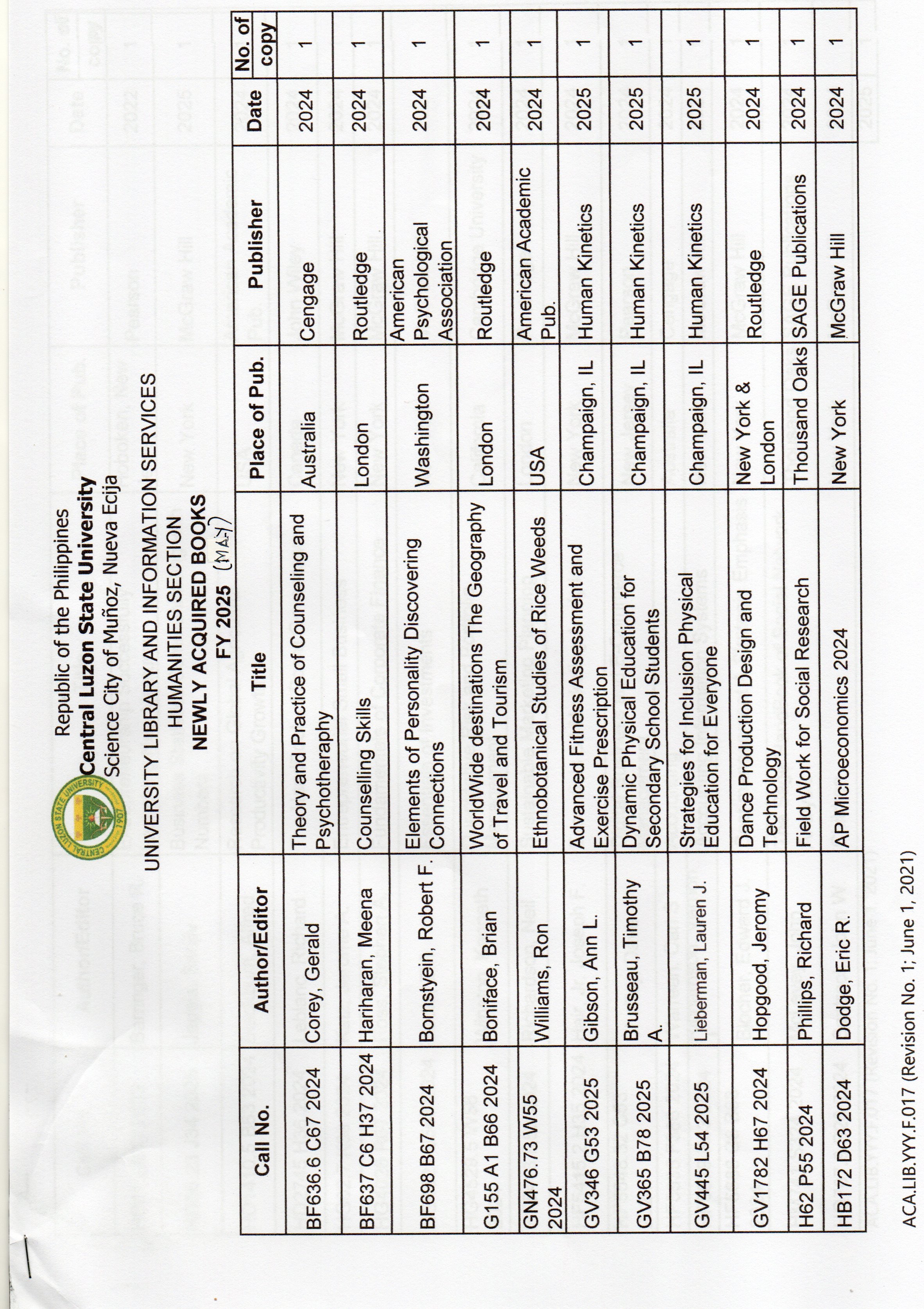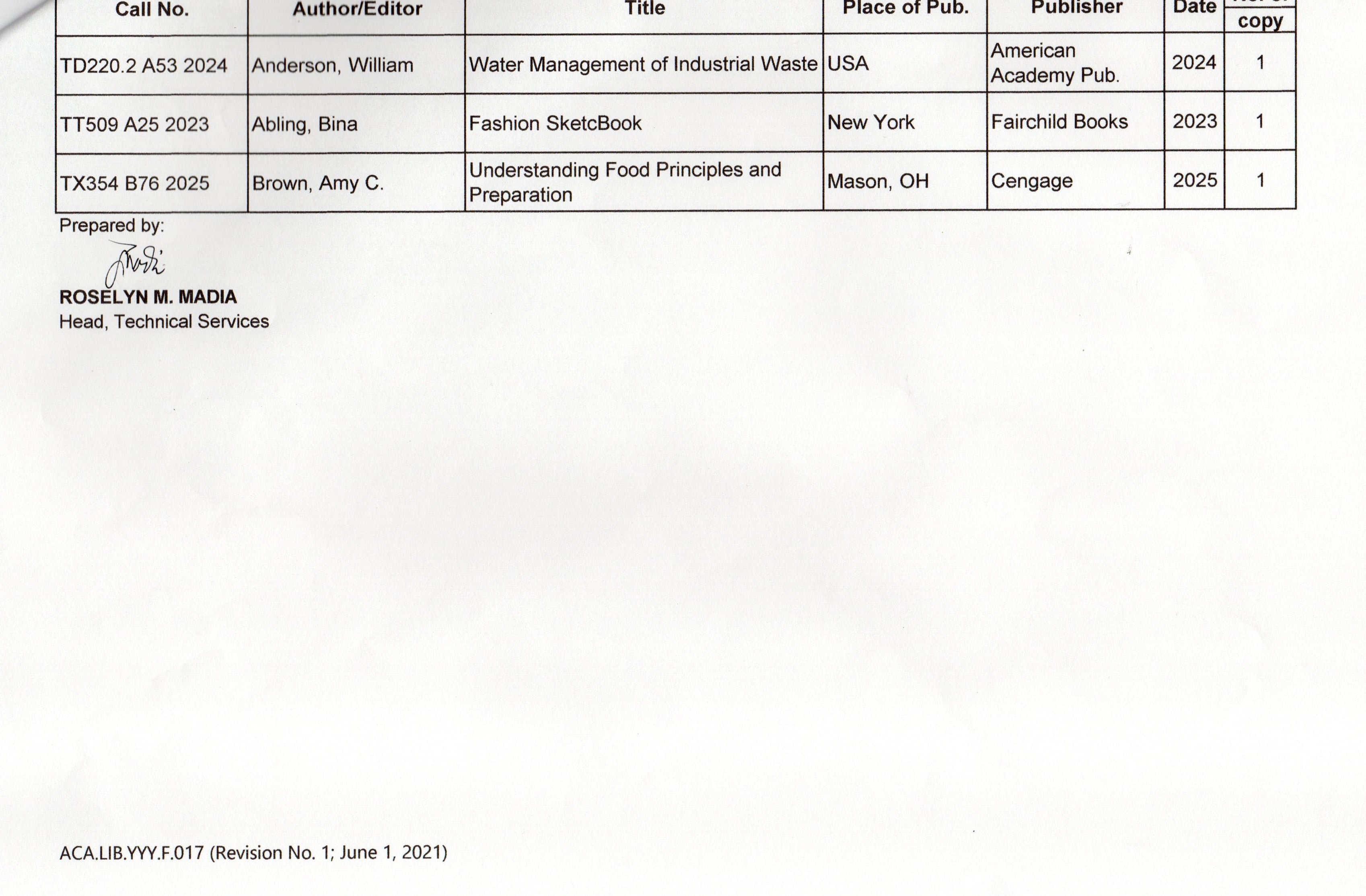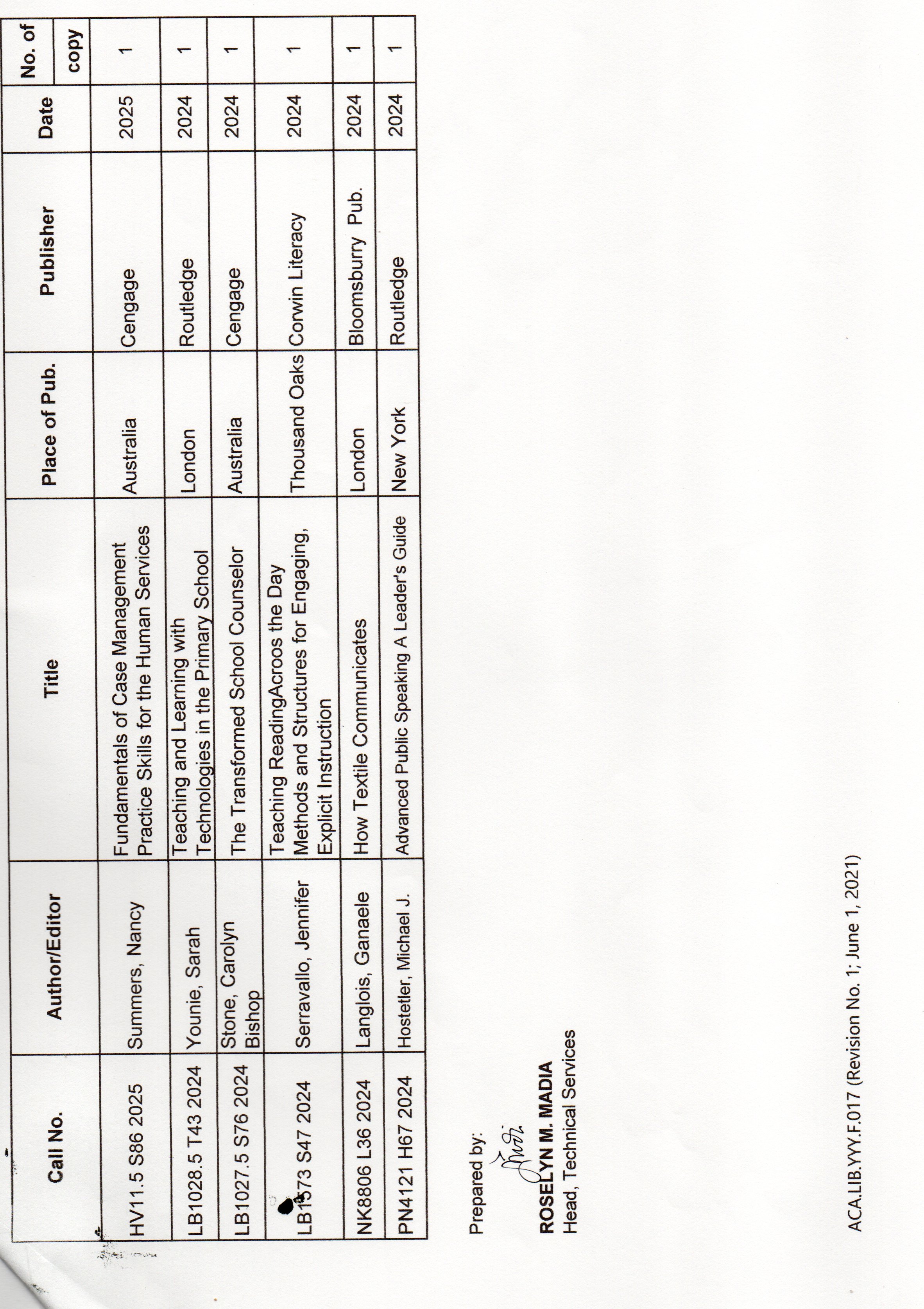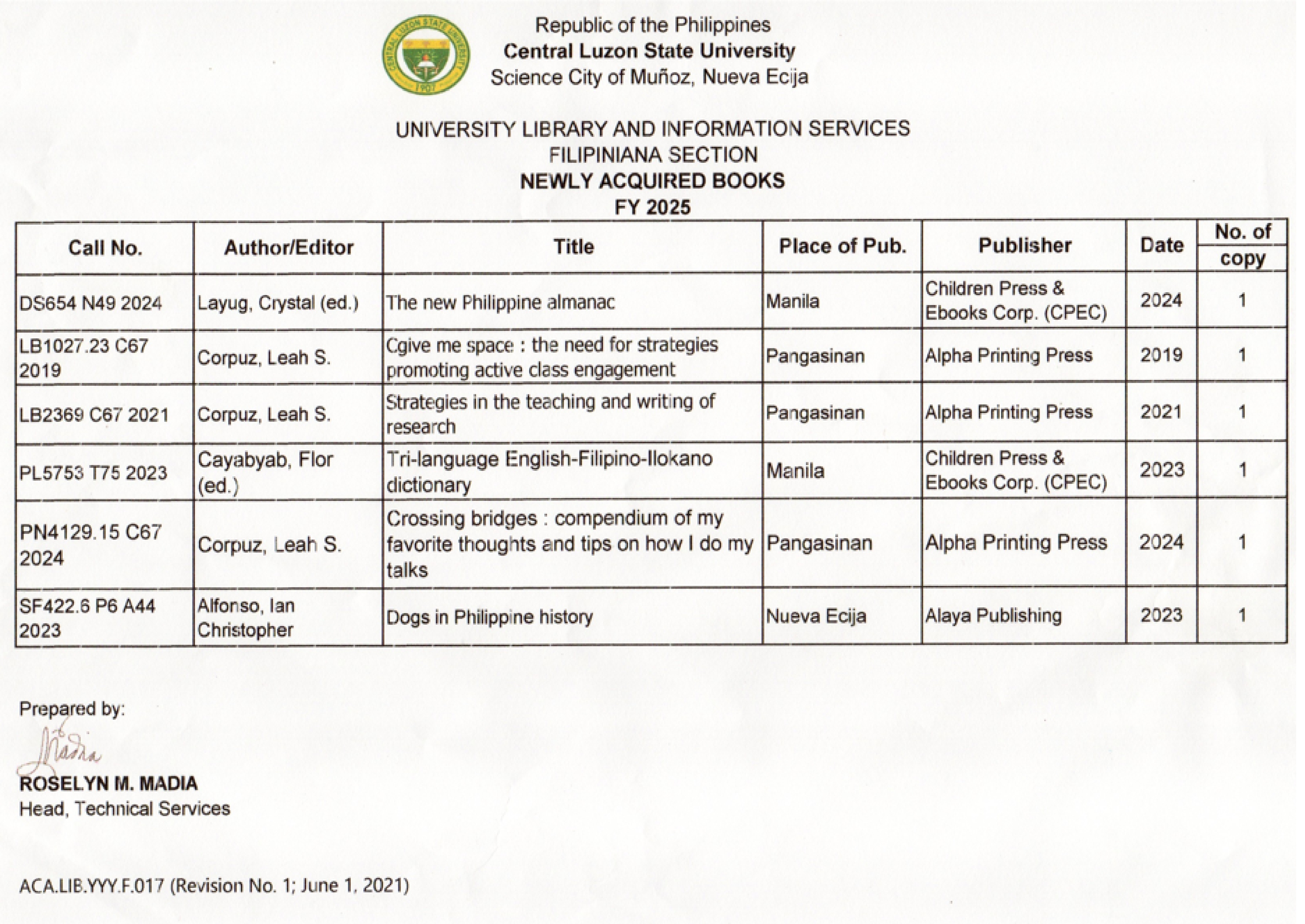 Dr. Camia A. Lasig was appointed as Head Librarian in January 2025, bringing with her over 21 years of dedicated service as a college